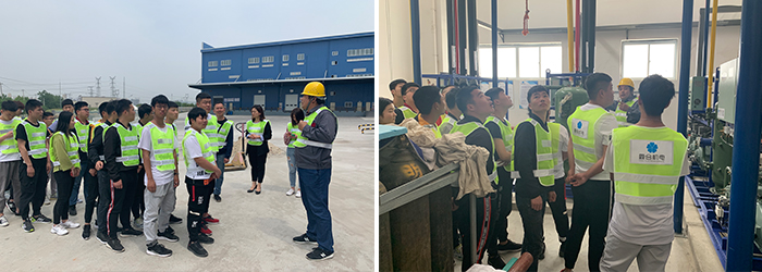 為了加強校企合作關系、強化學生的實踐經驗、拉近理論課程與實際施工的距離。5月6日,我司組織安徽糧食工程職業學院機電工程系學生到公司本部和即將竣工的生鮮傳奇配送中心冷庫工程現場參觀學習。