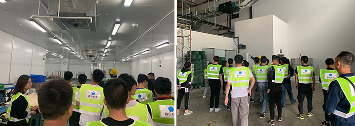 到達施工現場后,項目負責人張德海經理的帶領老師和同學們先后參觀了項目機房、冷藏庫、冷凍庫、加工間等。參觀期間,張經理對整個項目的每一個施工工序作了全面細致的講解,學生們用心聆聽,踴躍提問,張經理耐心地一一解答。